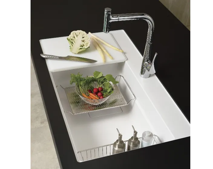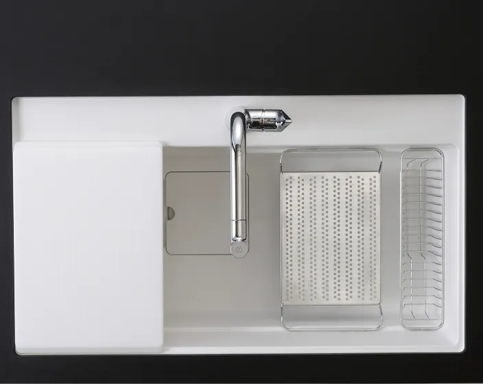 一體式提籠的設計 , 讓水槽整體更簡潔